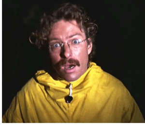 The fact that he’s known as the town lunatic indicates low IQ, though ironically, his crazy ramblings are proven true. Also, the fact that he rides a bike all the way to the camp suggests he’s either not smart enough to drive, or not smart enough to get the money for a car, and not wearing a helmet (or normal biking attire) also shows low IQ, though was probably a common mistake in the 1980s. Though in Ralph’s defence, biking is good exercise and good for the environment.