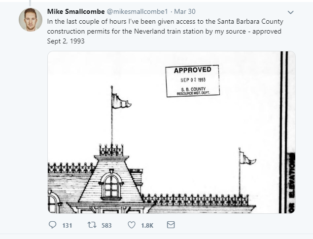 However Smallcombe is assuming the train station was only built after Jackson got the construction permit. But in an interview taped in 2018 (well before this controversy emerged) for episode 094 of a Jackson fan podcast called The MJ Cast, Jackson’s photographer Harrison Funk claims he was told not to photograph the train station because it was built without a permit.