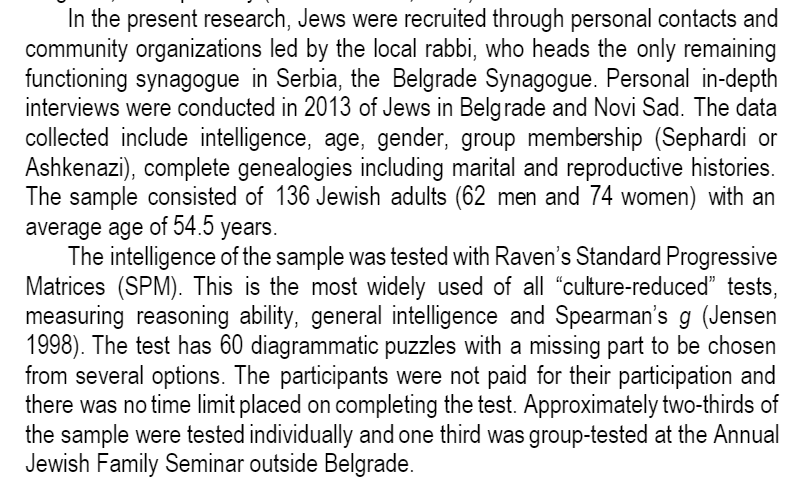 When we remove this redundancy, and look only at the independent predictive power of influence and height, his influence adds 30 IQ points and his height adds 11, so Usama’s expected IQ is 30 + 11 = 41 points above the Arab mean of 84. In other words, his expected IQ was 125. Standard error: 13.6. 95% confidence interval: IQ 98 to IQ 152