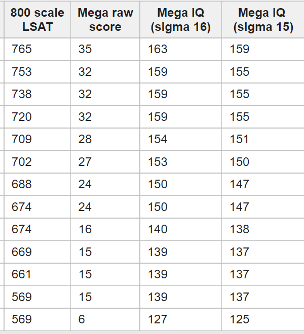 To my knowledge there have been no studies of Harvard Law students taking any version of the WAIS, but if there were, I’d expect them to also regress to the mean . However unlike the SAT, we can’t assume that virtually all smart young American adults have taken the LSAT and thus we can’t regress them to the U.S. mean. We can however assume that virtually all Harvard Law students become get their degree, and the average IQ of Americans with professional degrees is about 125 so instead of regressing to the U.S. mean of 100, they’d regress to the professional mean of 125.