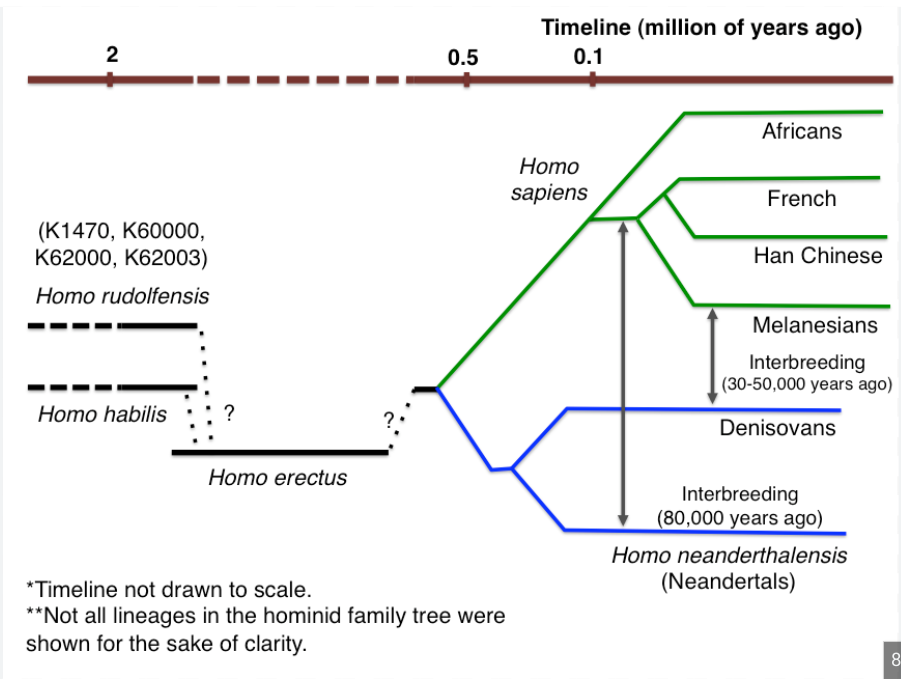 There is however a problem with Rushton’s model. If instead of looking at the three main races in the human species, we look at the three main species in the Homo genus, I’ve noticed modern humans branched off before Denisovans or Neanderals. To quote my bitchy 10th grade science teacher who was one of the few people to truly get it: “if you’re the first branch, and you don’t do anymore branching, then you’re less evolved than higher branches.”