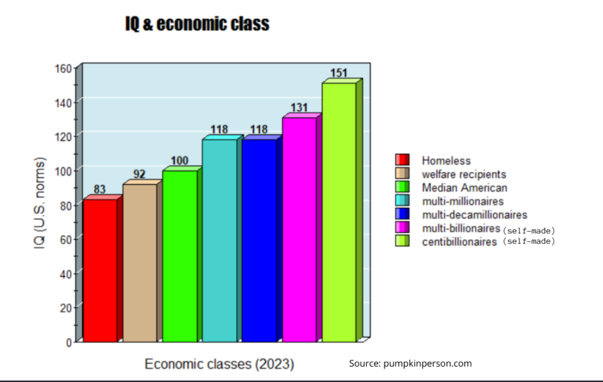 The richest 0.27% (multi-decamillionaires in 2023); Average IQ 118